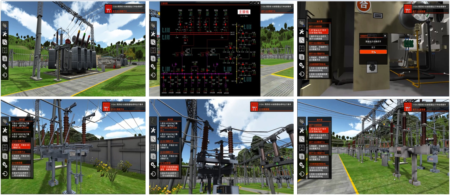 變電站倒閘操作三維仿真系統(tǒng)是以真實變電站為仿真對象,實現(xiàn)變電站漫游、操作票模擬、設(shè)備操作、變電站主接線圖狀態(tài)同步、導(dǎo)航定位等功能。通過該系統(tǒng),學(xué)員可以學(xué)習(xí)了解變電站的組成、接線方式、設(shè)備操作等。同時,該系統(tǒng)提供任意間隔的停電作業(yè)和送電作業(yè)的仿真操作模擬,學(xué)員可根據(jù)操作票的具體操作步驟,對指定間隔進行停電作業(yè)或送電作業(yè)的仿真操作,對學(xué)員具有一定的學(xué)習(xí)價值和指導(dǎo)意義。
